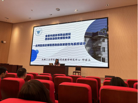 2023年11月23日下午,成都工业学院课程思政研究中心主任、博士邓若玉在学院厚德楼开讲《全面构建高等职业院校思想政治教育课程体系》课题。邓教授从党和国家对高等教育事业的要求和期待,应用型高校课程思政建设模式,课程体系构建策略,课程思政体系建设实践等方面进行了讲解。并和听课老师就相关热点问题或者困惑进行了交流和答疑。