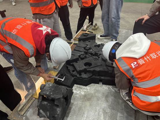 同时,总工程师黄鹏还向同学们讲解了模具砂芯零件测绘和铸造箱体零件制芯环节需要同学们掌握的理论知识,尤其是砂型铸造的工艺流程。一个完整的砂型铸造的工艺流程主要包括: