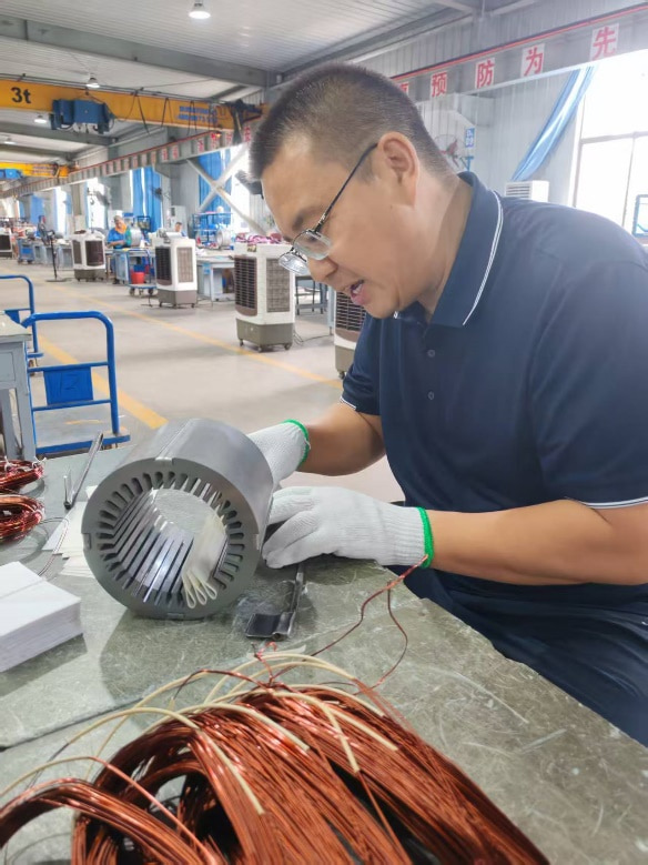 在技术总监王体华的引导下,教师们对力源电机的全流程生产体系进行了系统调研,重点了解了电机零部件加工、绕组制作、冲压成型及总装配等关键环节的工艺特点与技术标准。随后,根据每位教师的专业方向与研究领域,大家被精准分配至金工车间、电工车间、冲压车间、总装配车间等核心生产单元,由经验丰富的企业技术骨干担任“一对一”导师,开展沉浸式岗位实践。