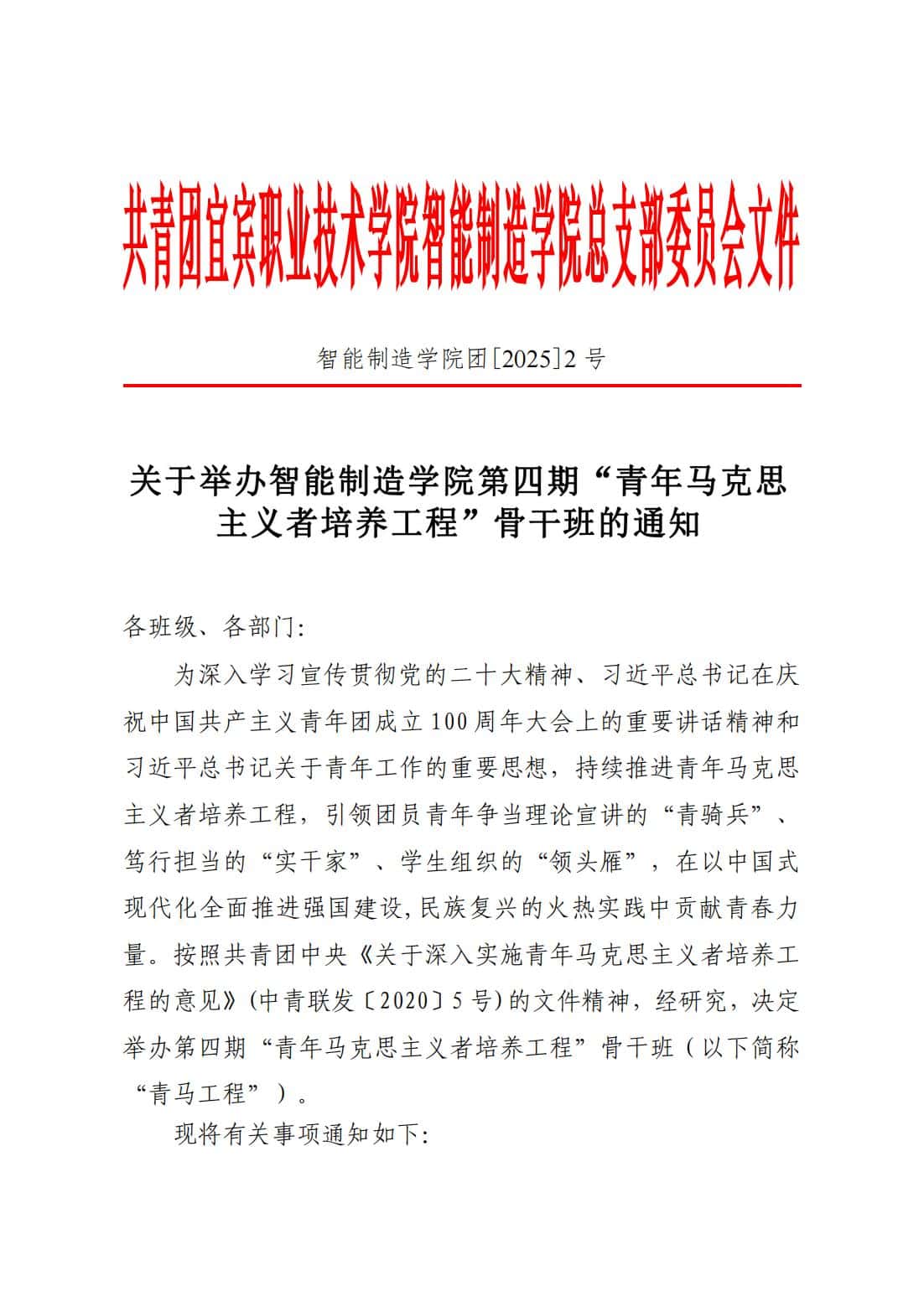 关于举办宜职院智能制造学院第四期“青年马克思主义者培养工程”骨干班的通知